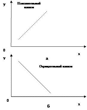 Когда величины обеих переменных изменяются в одном и том же направлении, между ними существует положительная, или прямая, зависимость. Она изображается на графике в виде восходящей линии (рис. 2.1, а).