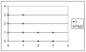 4. Составим прямое произведение множеств Х = {1,2,3}и У= {0,1}: Х´У и У´Х. Х´У={(1,0), (1,1), (2,0), (2,1), (3,0), (3,1)}. У´Х= {(0,1), (0,2), (0,3), (1,1), (1,2), (1,3)}. Геометрическая интерпретация произведения двух конечных множеств- точки плоскости. Как видно из построенных произведений прямое произведение множеств не обладает свойством коммутативности.