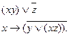 Первое из них есть дизъюнкция конъюнкции х и уиотрицания выказывания z, а второе высказывание есть импликация, посылкой которой является высказываниех,