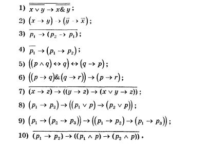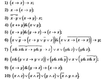 1. Установить, какие из следующих формул являются тождественно истинными, тождественно ложными путем преобразований и таблицы истинности.: