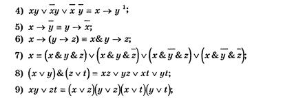 5. Перечислить равносильности, выражающие одни логические операции через другие.