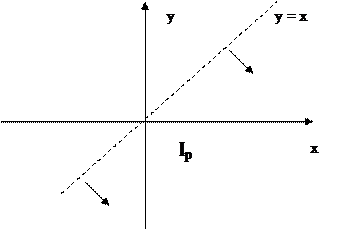 В числе примеров двухместных предикатов можно назвать предикаты: Q(х, у): «х = у» -предикат равенства, определенный на множестве М = R х R, область истинности которого – все точки прямой у = х: