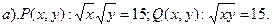 Область допустимых значений х и у для Р(х, у): x>0 и y>0; область истинности – все точки ветви гиперболы у = 15/х, лежащей в первой четверти.
