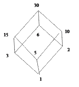 в) Дано множество А = {1,2,3,5,6,10,30}. Отношение «быть делителем». У покрывает х, если у делится на х. Диаграмма имеет вид: