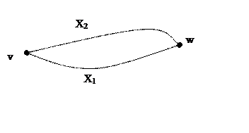 Рассмотрим теперь применения этого алгоритма для выделения эйлеровой цепи в связном псевдографе, имеящим ровно две вершины v, w нечетной степени., где Х ¹Æ. Добавляя к G ребро {v, w}, получим псевдограф G' с четными степенями вершин. Выделив в G' эйлеров цикл и удалив из него ребро {v, w}, получим эйлерову цепь.