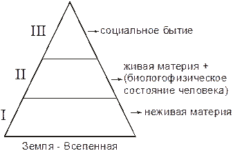 Весь окружающий мир мы будем воспринимать как разные формы материального бытия и построим пирамиду с тремя ярусами форм бытия:
