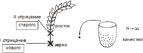 Таким образом, отрицание отрицания характеризует известную цикличность, повторяемость в прогрессивном развитии. Повторение пройденных уже ступеней развития – это не буквальный возврат к старому, это утверждение нового, которое зачастую имеет со старым только внешнее сходство.