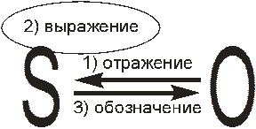 Отражательно-познавательные связи между субъектом и объектом последовательно приобретают формы: связи отражения (от объекта к субъекту); связи выражения (формирование в сознании образа, знака, имеющих смысл и содержание на основе отраженных свойств объекта познания); связи обозначения(формировании в сознании объема образа или знака. степени распространенности их на познаваемый и другие объекты.)