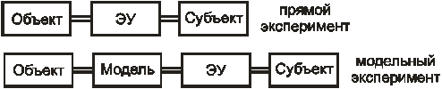 В отличии от наблюдения в ходе прямого эксперимента субъект воздействует на объект по средствам экспериментальной установки.