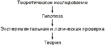Научное исследование начинается с эмпирического исследование, которое включает два метода: наблюдение и эксперимент. На основе объяснения и явления необходимо дать характеристику сущности каких-то фактов, событий и этим занимается теоретическое познание, которое включает гипотезу, мысленный и реальный эксперимент, умозрительную концепцию, создание теории.