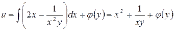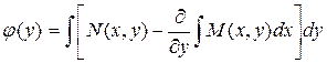 где j (y) – произвольная дифференцируемая функция от у, а при выполнении интегрирования переменную у под знаком интеграла надо считать постоянной.