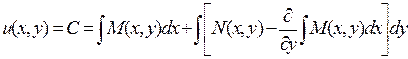 Итак, если левая часть уравнения (3.1) совпадает с полным дифференциалом функции u=u(x,y), то справедливо выражение