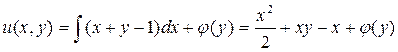, следовательно, условие Эйлера выполнено, и исходное уравнение является уравнением в полных дифференциалах. Найдем функцию u(x,y) по изложенной выше схеме, а именно, предположим, чтобы выполнялось равенство
