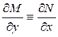 Необходимым и достаточным условием существования функции u=u(x,y) (при существовании непрерывных частных производных первого порядка от функций М(х,у) и N(x,y)), является выполнение тождества