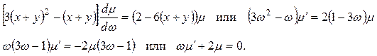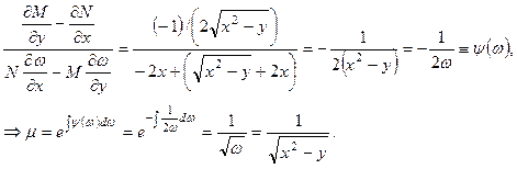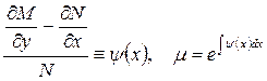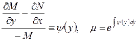 Таким образом, умножив исходное уравнение на этот множитель, мы приведем его к уравнению в полных дифференциалах:
