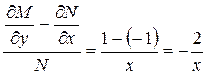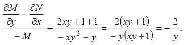 Проверим, существует ли для этого уравнения интегрирующий множитель, зависящий только от х? Для этого проверим условие (3.19):