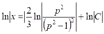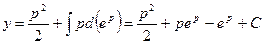 Выразим у через р для чего из последнего равенства выразим dx, используя равенство