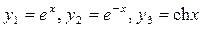 Этот определитель равен нулю, так как элементы 1-й и 3-й строк одинаковы. Следовательно, функции