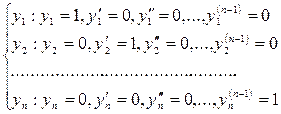 однородного уравнения (5.1) называется нормированной в точке х = х 0, если эти решения удовлетворяют соответственно следующим начальным условиям:
