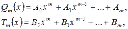 где т = max (q,l); Qm (x), Tm (x) – многочлены переменной х степени т с неопределенными коэффициентами и определяются следующим образом: