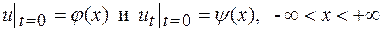 Поставим задачу Коши для однородного волнового уравнения, описывающего свободные колебания однородной струны, т.е. найдем решение уравнения