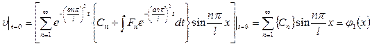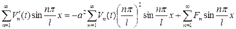 а также разложим функцию F (t,x) в ряд Фурье по синусам