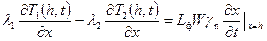Согласно (17п.6) на глубине промерзания Т1 = Т2 = Т*, поэтому уравнения (17п.15) и (17п.16) при х = h примут вид