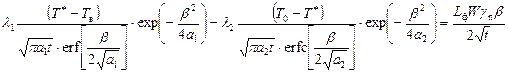 Определив β из (17п.36) как функцию λ1, а 1, λ2, а 2, Т*, Тв, Т0, L ф, W и γ n, и принимая во внимание, что h=