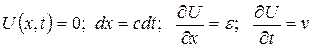 В рассматриваемый момент времени t на фронте АВ перемещение частиц U(x,t) = 0. За время dt этот фронт, двигаясь с некоторой скоростью с, переместится на расстояние dx = сdt в положение А 1 В 1. Причем и в этом новом положении для поверхности разрыва имеет место равенство