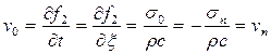 где в правой части записан импульс силы, действующей на эти частицы. При этом учтено, что распространяющийся вправо импульс напряжений является импульсом сжатия, а величина напряжения в нем отрицательна. После сокращения на S и dt получим