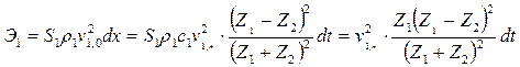 Рассчитаем полную энергию в прошедшем и отраженном импульсах за время dt действия падающего импульса.