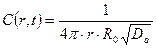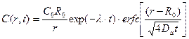 , описывающей распределение концентрации радиоактивности в матрице породы и справедливое также для условия