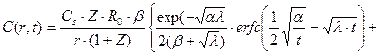 Решение для концентрации в матрице породы в переменных изображения легко получается из комбинации уравнений (23.33) и (23.36). Если снова для упрощения формул ввести обозначение