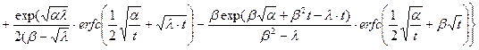 Теперь можно обратиться к таблицам обратного преобразования Лапласа (табл 21.1) и записать искомую функцию в терминах оригинала для двухкомпонентной модели выщелачивания