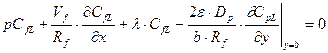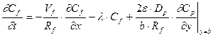 - коэффициент поверхностной сорбции в трещине, имеющий размерность длины и определяемый как «масса растворенного вещества, адсорбируемая на единице площади поверхности и деленная на концентрацию растворенного вещества»
