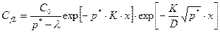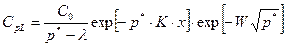 Решение дифференциального уравнения первого порядка (23.35) с учетом граничного условия (23.27) – постоянства концентрации на входе в трещину – запишется в виде