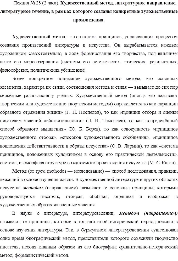 Лекция № 27 (4 часа). Понятие о литературном процессе. Основные закономерности литературного процесса.