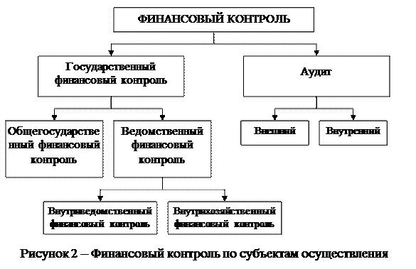 2.1. Внутриведомственный финансовый контроль осуществляется во всех министерствах и ведомствах по отношению к подведомственным государственным предприятиям, организациям, учреждениям. Таким образом, внутриведомственный финансовый контроль есть вид государственного контроля, так как министерства, ведомства – элементы государства, его исполнительных органов.