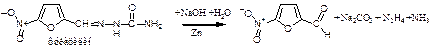2. Кроме того, для отличия одного препарат от другого рекомендуется реакция со спиртовым раствором щелочи в различных органических растворителях. Чаще всего берут ацетон или диметилформамид, в которых нитрофураны очень хорошо растворяются. В зависимости от концентрации испытуемого препарата в органическом растворителе и количества добавляемой щелочи окраски меняются в соответствии с характером каждого препарата.