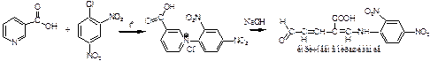 2. Реакция с 2,4-динитрохлорбензолом на пиридиновый цикл (см. «никотиновая кислота»).