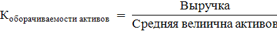 (показывает сколько раз за период обернутся средства, которые мы вложили в активы)