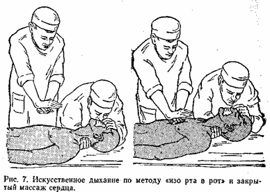 Сочетание массажа сердца и проведения ИВЛ.