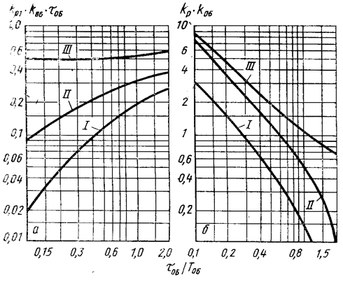 I— апериодический процесс; II— с 20-% перерегулированием; III— процесс с min