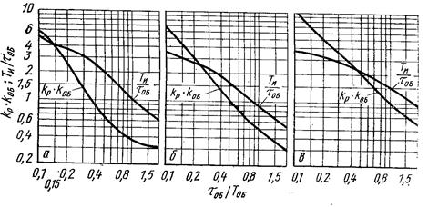а— апериодический процесс; б— с 20-% перерегулированием; в— процесс с min