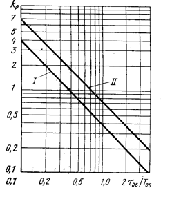 I— апериодический процесс; II— процесс с 20-% перерегулированием