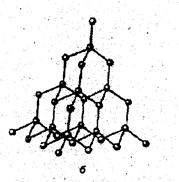 Атомно-ковалентные кристаллы (C, Ge, Si, SiO2, SiC). В узлах кристаллов располагаются атомы, образующие друг с другом прочные ковалентные связи. Это обусловливает высокую энергию решетки, температуру плавления, они очень твердые, могут быть и диэлектриками и полупроводниками. Из-за направленности ковалентных связей координационные числа и плотность упаковки в атомно-ковалентных кристаллах обычно невелики. Так, например, в кристалле алмаза углерод имеет sp3-гибридизацию и, соответственно, координационное число 4 (рис. 4).