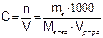 Молярная концентрация (С) показывает число моль растворенного вещества (n) в 1 дм³ раствора (V):