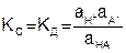 где аН+, аА-, аНА – активность ионов и кислоты (а = αС).
