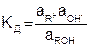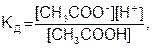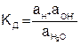Константа равновесия для процесса диссоциации называется константой диссоциации КД. Например, константа диссоциации уксусной кислоты СН3СООН равна