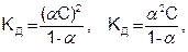 Если степень диссоциации значительно меньше единицы, то при приближенных вычислениях можно принять, что (1-α)» 1. Тогда выражение закона разбавления упрощается: